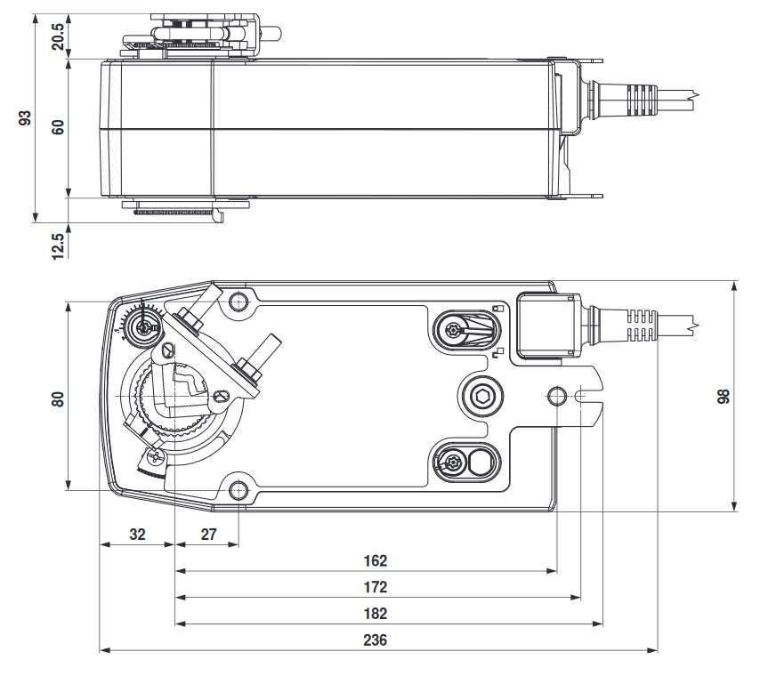 In caso di interruzione dell'alimentazione, la molla di ritorno inizia a ruotare l'attuatore nella posizione iniziale. Ad esempio, in caso di interruzione dell'alimentazione, chiude la serranda o la valvola a sfera. Lo stesso risultato può essere ottenuto anche al contrario, dipende solo dalla posizione iniziale della serranda.