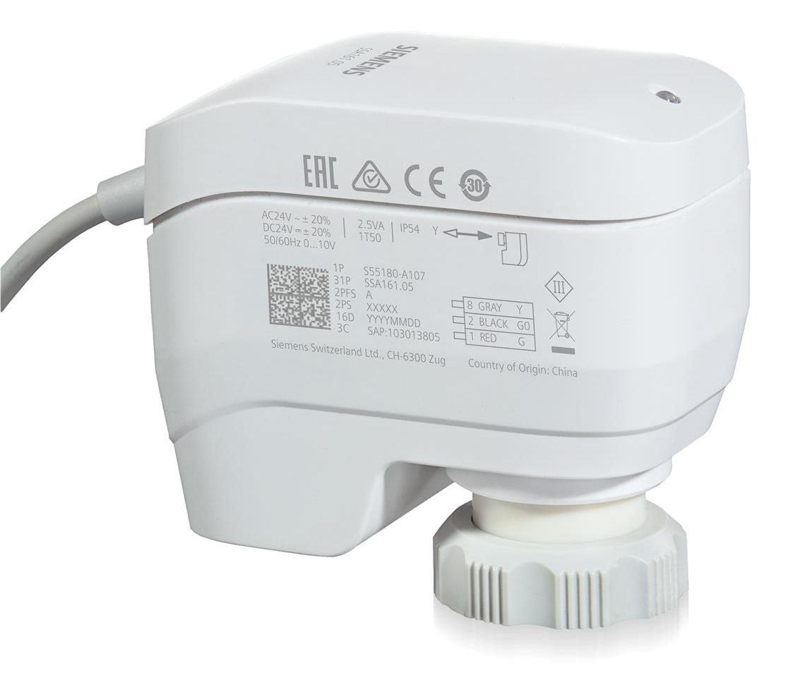 Attuatore lineare Siemens SSA161 per riscaldamento a radiatori, sistemi VAV, applicazioni fan coil e raffreddamento a soffitto. Maggiori informazioni