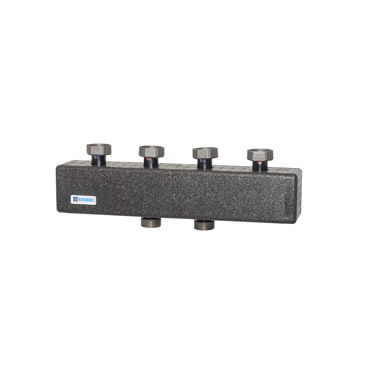 Collettore per gruppi di pompe con dimensione di connessione DN 25-32 serie GxA100. È fornito in un involucro isolante e con supporti per il montaggio a parete. Il collettore è contrassegnato a colori per rendere l'installazione il più semplice possibile.