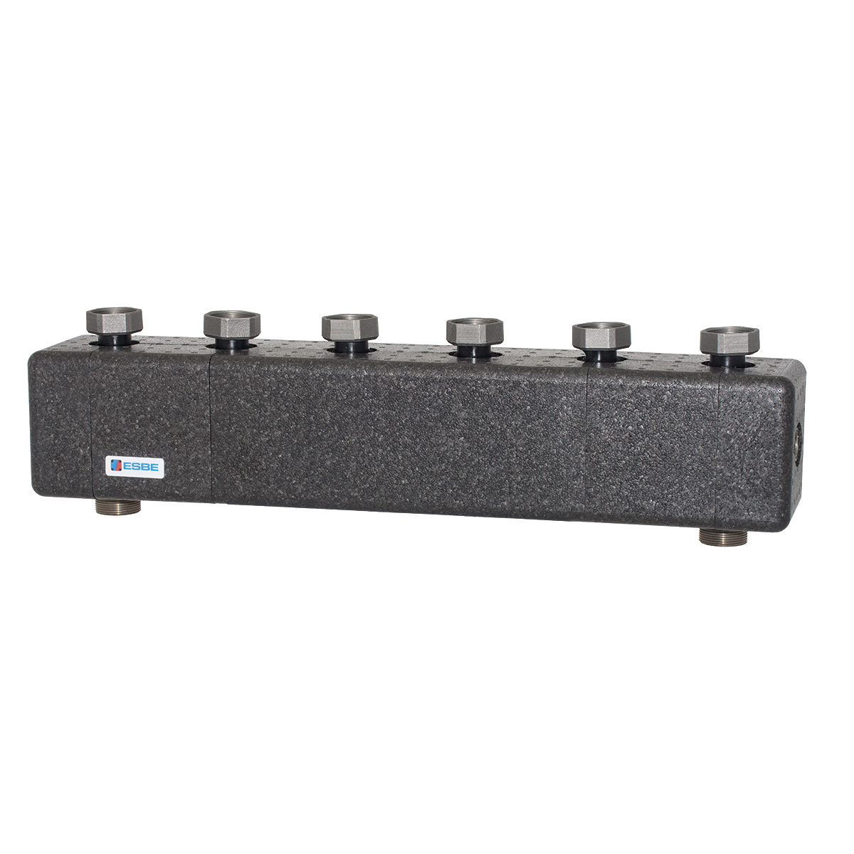 Collettore per gruppi di pompaggio con dimensione di connessione DN 25-32 serie GxA100. È fornito con custodia isolante e supporti per il montaggio a parete. Il collettore è contrassegnato con colori per rendere l'installazione il più semplice possibile.