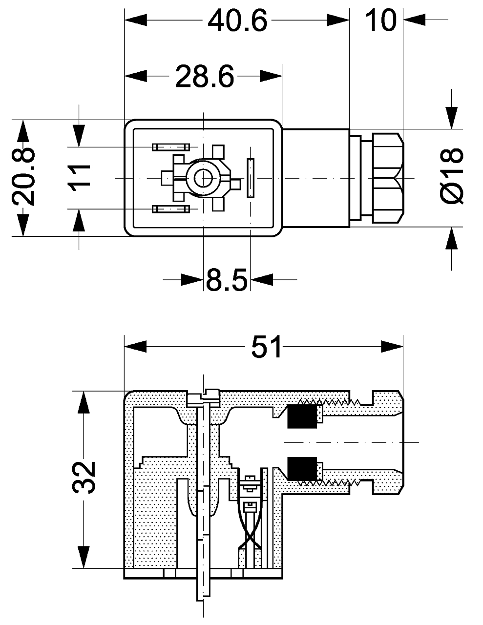 Connettore a cavo per bobina Danfoss 9-22 AB/AC.