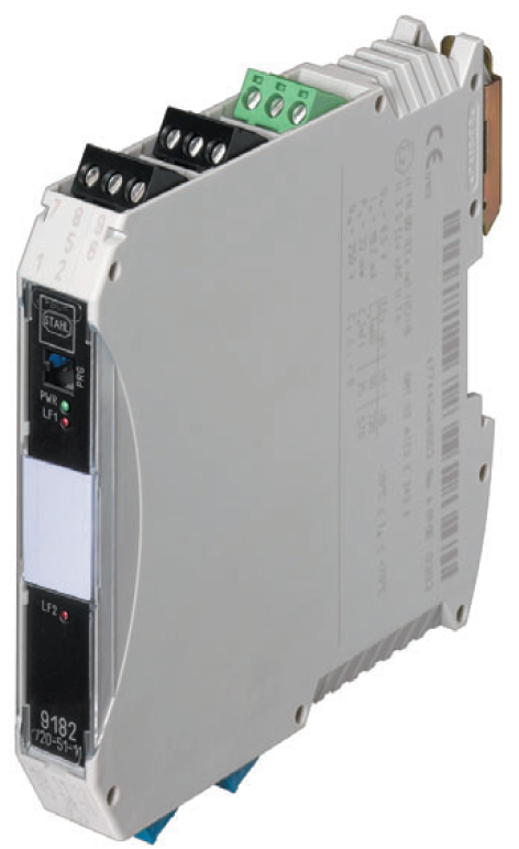Convertitore di temperatura con circuito a sicurezza intrinseca per il collegamento di sensori di temperatura. Adatto per circuiti in aree esplosive delle zone ATEX 0, 1, 2, 20, 21, 22. Consente il collegamento della maggior parte dei sensori attualmente prodotti. Fornito di serie come convertitore per Pt 100, ma è possibile ordinare per Pt 500, Pt 1000, Ni 100 e il collegamento di termocoppie e trasmettitori resistivi.