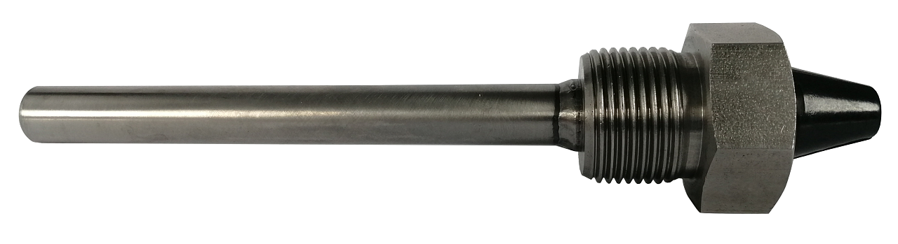 Guaina protettiva, acciaio inossidabile G1/2, per regolatori con altri intervalli di temperatura. La lunghezza della guaina è di 135 mm e il diametro di 12 mm.