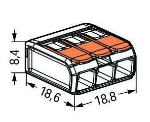 Morsetto di connessione COMPACT per conduttori pieni con diametro massimo di 4 mm². Con tre punti di connessione.