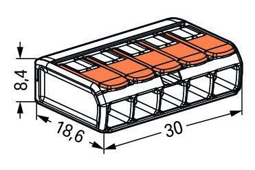 Morsetto di connessione COMPACT per conduttori pieni con un diametro massimo di 4 mm². Con cinque punti di connessione.
