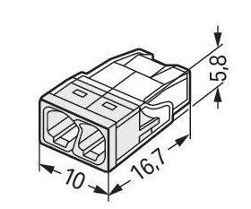 Morsetto di giunzione per scatola COMPACT per conduttori pieni con diametro massimo di 2,5 mm². Con due punti di connessione.