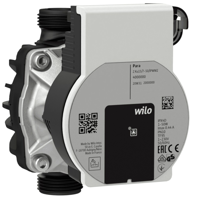 Pompa di circolazione a controllo elettronico per la circolazione di acqua potabile e acqua calda sanitaria. Il controllo bidirezionale esterno iPWM2 consente il trasferimento diretto dello stato e della stima del flusso al sistema superiore. Il corpo composito è adatto per applicazioni con ACS.