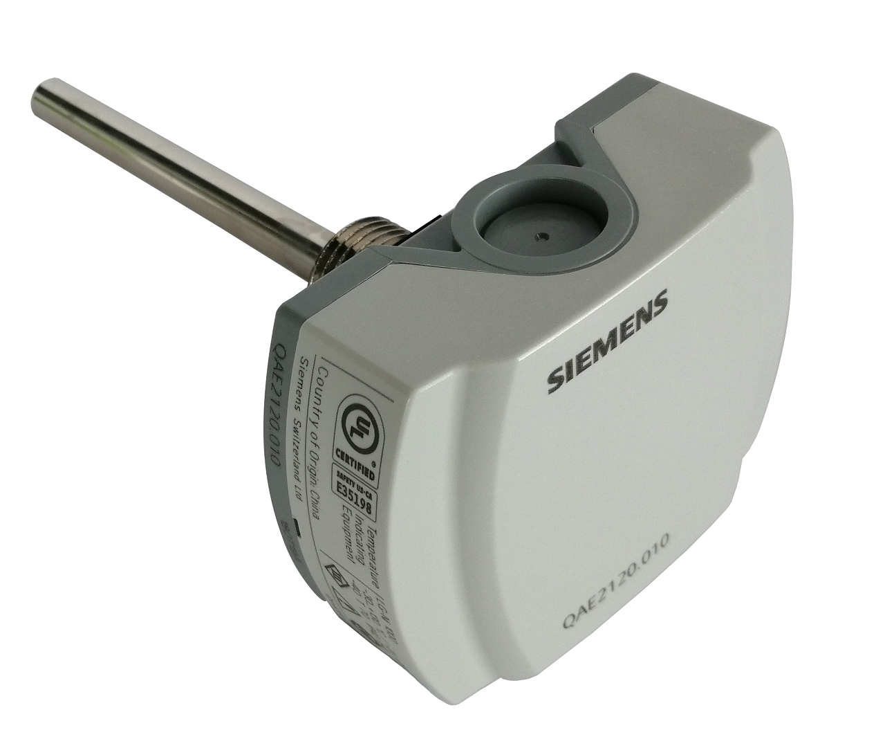 Sensore di temperatura passivo ad immersione QAE 2112.010. Utilizzato per la misurazione della temperatura dell'acqua in tubazioni e serbatoi, per la regolazione o limitazione della temperatura dell'acqua di riscaldamento, la limitazione della temperatura dell'acqua di ritorno e la regolazione del riscaldamento dell'acqua sanitaria.