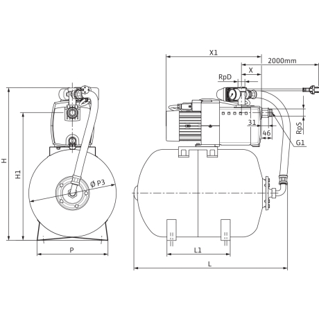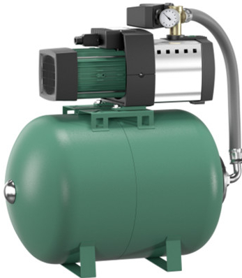 Stazione di potenziamento HiMulti 3H 100-45 con serbatoio a membrana da 100 litri e pompa potente a bassa rumorosità. Grazie alla bassa rumorosità, può essere installata senza problemi direttamente in casa. Garantisce il pompaggio dell'acqua, una pressione sufficiente, ma anche il drenaggio dell'acqua da serbatoi, stagni, ruscelli e pozzi.