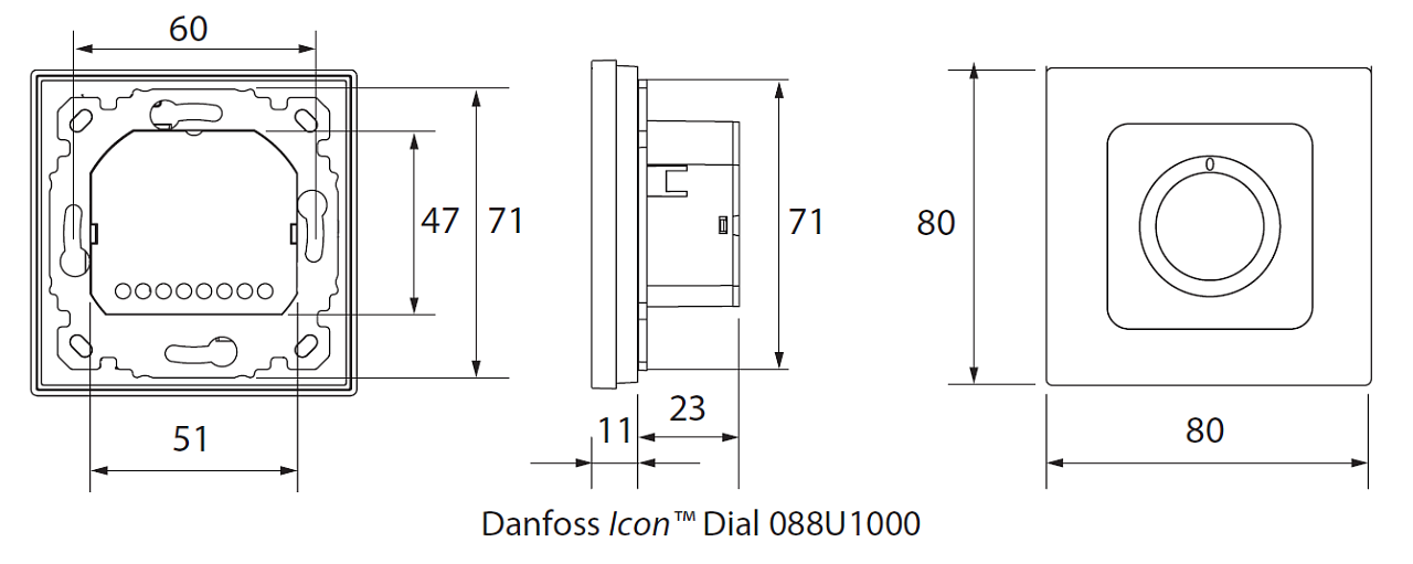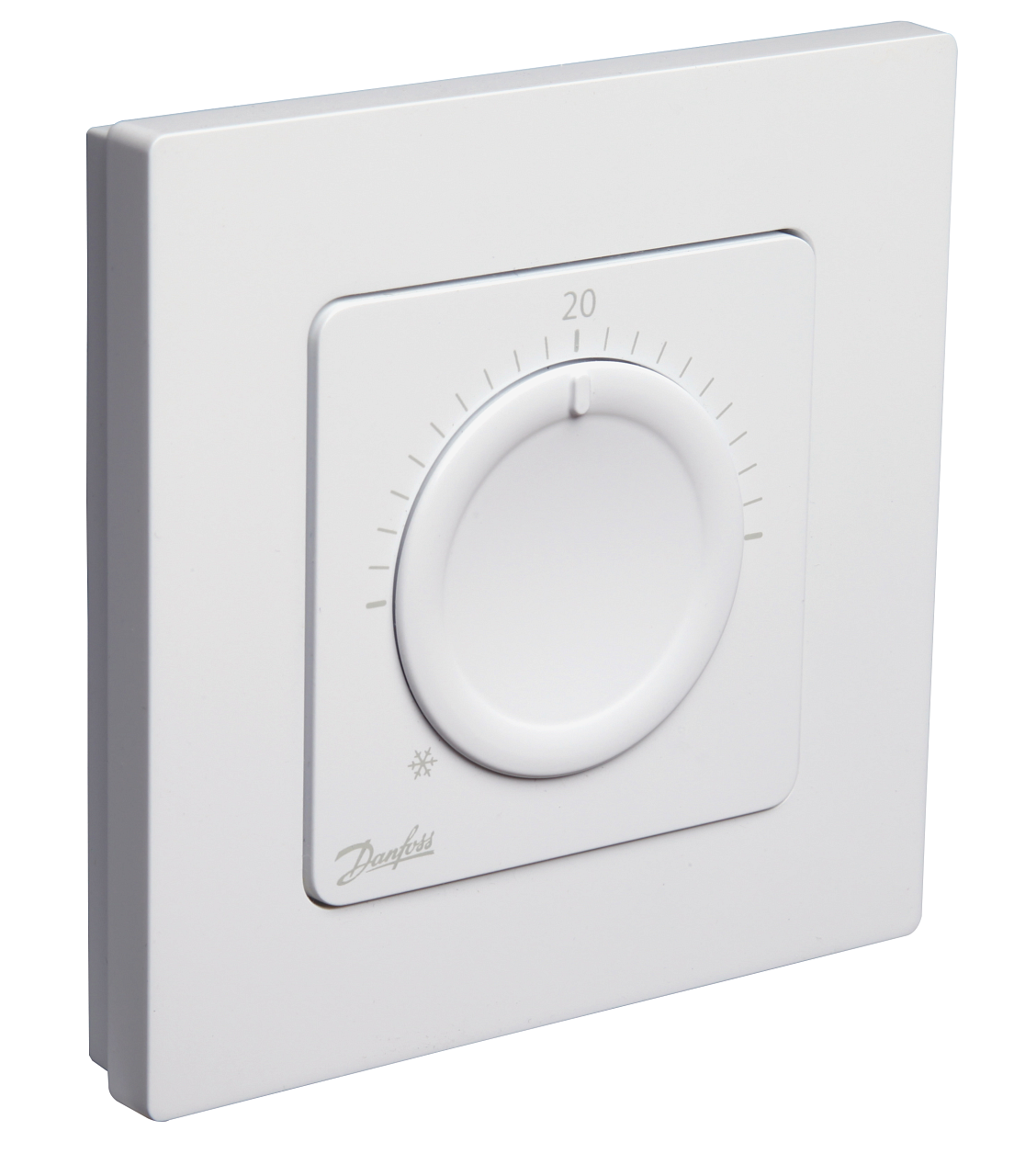 Il moderno termostato ambiente Danfoss Dial appartenente alla famiglia Danfoss Icon regola il riscaldamento a pavimento tramite una manopola, con la quale è possibile impostare la temperatura desiderata con precisione nel range di 5-30 °C. Può essere utilizzato singolarmente o collegato al regolatore di controllo Master Controller. Tramite l'uscita relè è in grado di controllare fino a 5 attuatori termoelettrici. La manopola può essere rimossa e per impostare il range di temperatura desiderato si possono utilizzare i perni di limitazione. È integrata una funzione di protezione antigelo (5 °C).