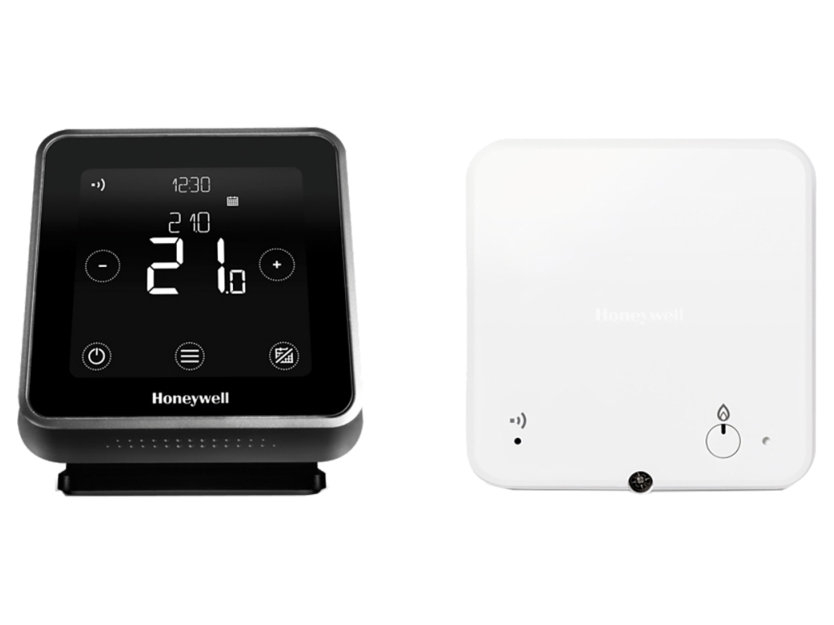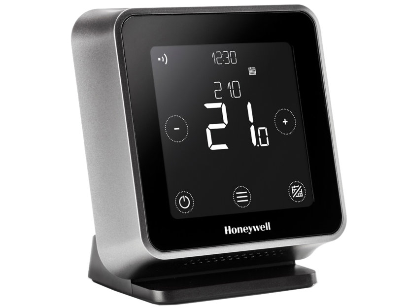 Lyric T6R HW è un design mobile e da tavolo, ideale per l'uso domestico. Oltre al riscaldamento, si occupa anche del riscaldamento dell'acqua calda. Richiede solo alimentazione di rete e comunica senza fili con l'unità di controllo della caldaia (l'unità è inclusa nella fornitura, a 2 canali).