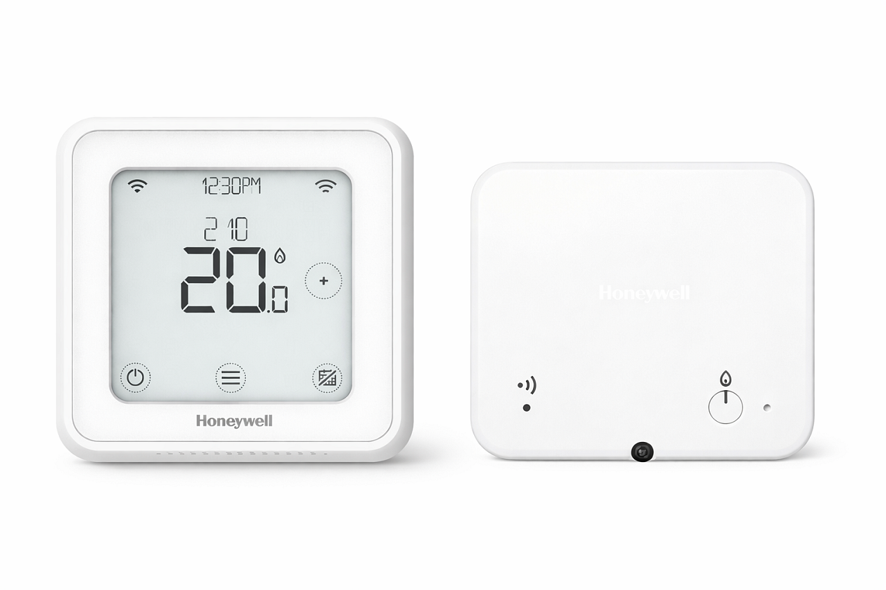 Lyric T6R è un design mobile e da tavolo, ideale per l'uso domestico. Richiede solo alimentazione dalla rete, comunica in modalità wireless con l'unità di controllo della caldaia (l'unità è inclusa nella fornitura).