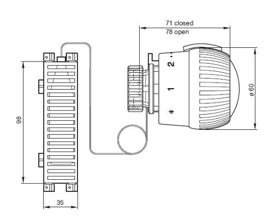 Le testine termostatiche 2080fl si montano sui corpi delle valvole termostatiche (TRV). In combinazione con le TRV, regolano la temperatura ambiente tramite l'impostazione del flusso dell'acqua di riscaldamento verso le superfici riscaldanti. Le TRV si montano nei sistemi di riscaldamento ad acqua all'ingresso o (meno frequentemente) all'uscita degli elementi riscaldanti o di altri sistemi di riscaldamento.