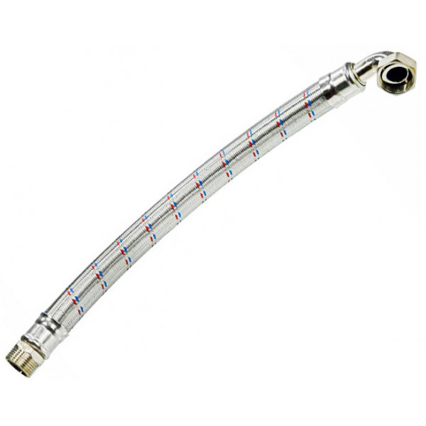 Tubo flessibile intrecciato in acciaio inox 1"x1" con gomito MF 50 cm, PN 10 e temperatura massima 80°C