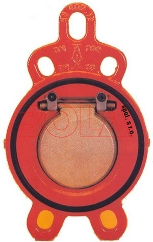 Valvola di ritegno a disco tra flange per sistemi di riscaldamento comuni, acqua o oli. Il corpo della valvola è in ghisa sferoidale, il disco della valvola è in acciaio inossidabile.