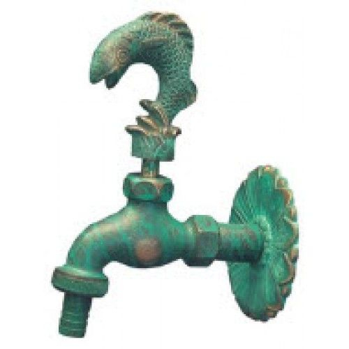 Rubinetto nostalgico di scarico con motivo di pesce. Adatto come accessorio per la casa e il giardino.