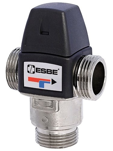 Valvola miscelatrice termostatica ESBE. Intervallo di temperatura regolabile 35-60 °C. Dimensione DN 15, connessione filettatura esterna G 3/4". Maggiori informazioni