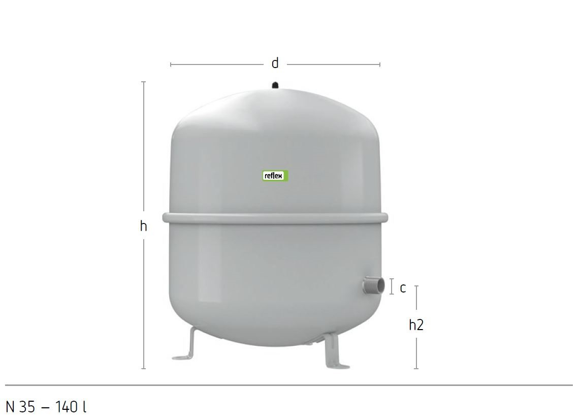 Serbatoio di espansione a membrana progettato per sistemi di riscaldamento e raffreddamento chiusi. Questo prodotto è conforme alla norma DIN EN 13831 e alla direttiva sulle attrezzature a pressione 2014/68/EU. È dotato di un rivestimento epossidico per una lunga durata e una membrana pressata non sostituibile.